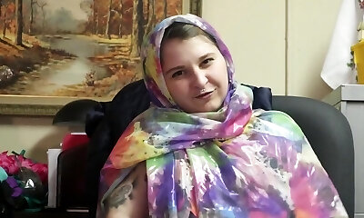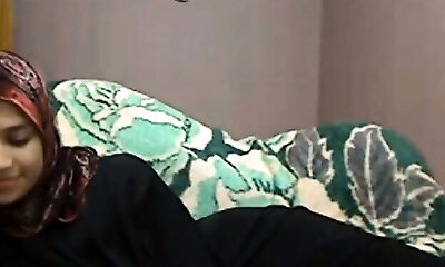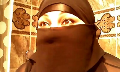 A super-hot slut in a hijab records a fuck-a-thon video for her boyfriend where she masturbates