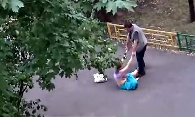 Totally drunk woman on the street