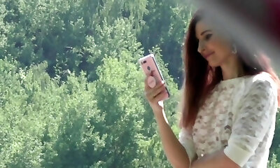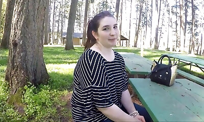 Desirable maid reveals her adorable pair of globes in the park