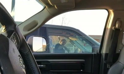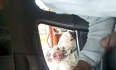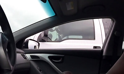 Buxom teen flash tits and grip cock in car to stranger