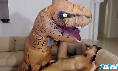 Dude in funny costume plows step-mom and step daughter early in the morning