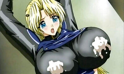 Captive hentai gets squeezed her huge melon fun bags by doctor