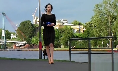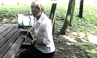 Just public program and stellar ash-blonde nympho with nice legs and booty
