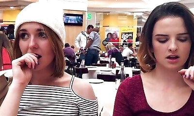 Unexpected threesome with two beautiful teen nextdoor girls in public