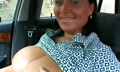 Slim Russian platinum-blonde frigged by random bystander on her driver's seat