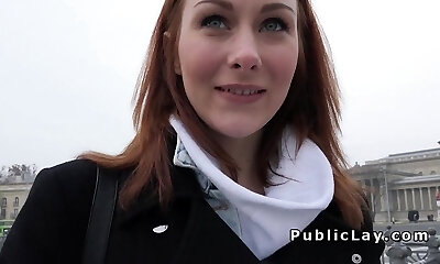 Red haired quite pallid nympho with flossy booty is eager for doggy hump
