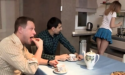 Russian man with 2 eighteen+ teenage gals
