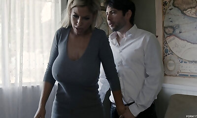 Phat bosom brunette Sheridan Love seduces neighbor and takes his intense dick in her twat