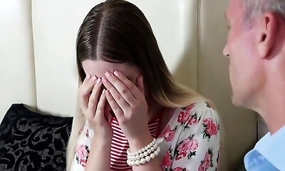 Sexy Slim Platinum-blonde Cutie Helps Her Step-brother-in-law To Work-out His Spear To Pay Off Her Gambling Debt