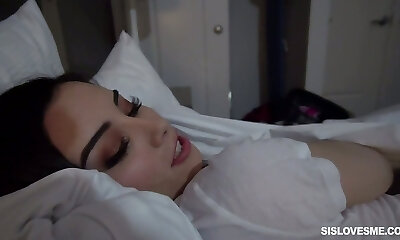 Lustful step-sister Aria Lee plays with stepbrother's bone before falling asleep