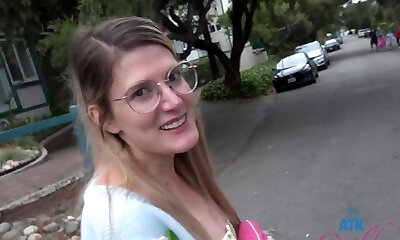 Nerdy blondie in glasses Nancy Ace turned to be nasty and insatiable girl