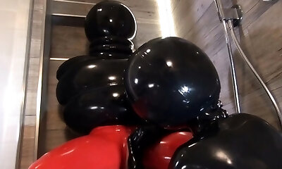 Boy in latex suit gets fucked by a filthy shemale Nyobi