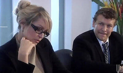 Hot blonde in office clothes gets boned hard at the business meeting