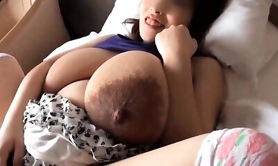Pregnant brunette has immense natural boobs