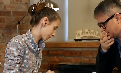 Pervy tutor ejaculates in his skinny student !