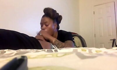 Kinky tattooed ebony nympho exposed her really huge booty and big orbs