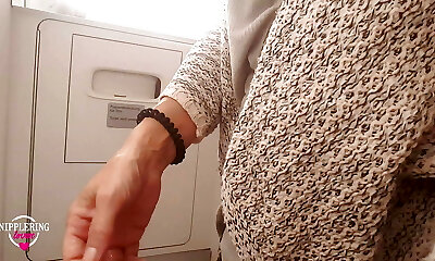 nippleringlover horny milf pissing on public toilet in airplane flashing pierced pussy and extraordinary pierced nipples