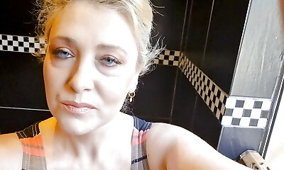 The mature woman continues her rest room series