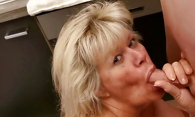 Ugly fat and nerdy platinum-blonde mature slut sucks strong trouser snake and gets banged