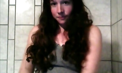 Long haired ebony head with ugly saggy pallid tits was masturbating on webcam