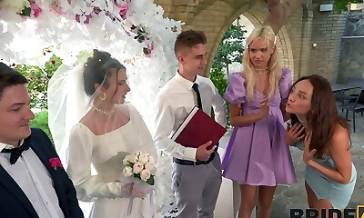 Three folks fuck all hole of mischievous bride Allison Moore before wedding ceremony