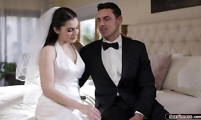 Lovable bride Alix Lynx is making love with her hubby soon after the wedding ceremony